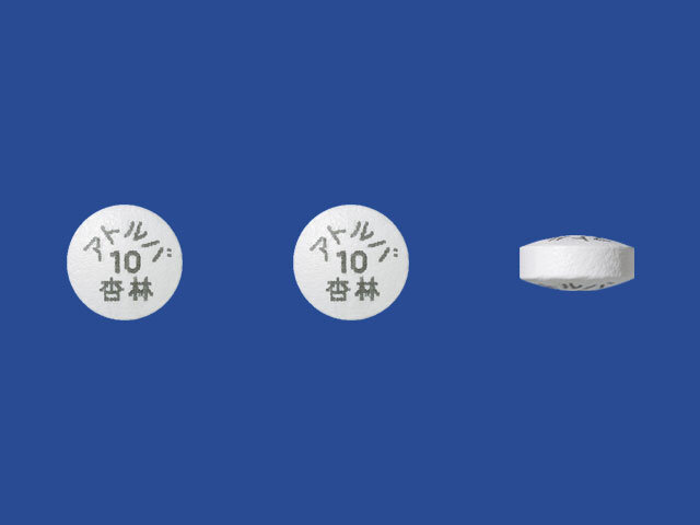 | 成分・分量 | (1錠中) アトルバスタチンとして 10mg (日局 アトルバスタチンカルシウム水和物 10.84mg) | ||